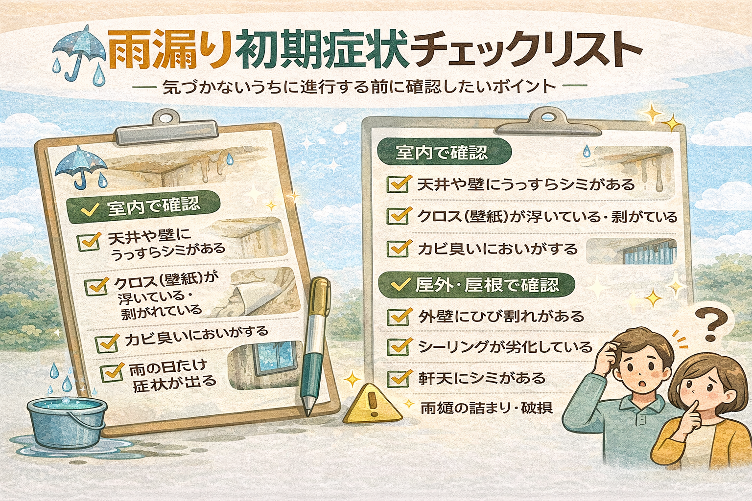 NEW 雨漏りの初期症状チェックリスト 2026年01月16日 みなさんこんにちは 外壁塗装のタマオです! 前回は「 雨漏りと外壁塗装の関係 」 についてご紹介しましたが、今回は 「雨漏りの初期症状チェックリスト」について紹介します♪ &nb… 続きを読む >>