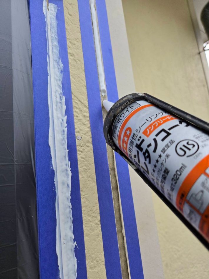 | 工事内容 | 【標準工事】 ・足場仮設 ・飛散防止シート張り ・高圧洗浄 ・下地処理 ・養生 ・下塗り(1回) ・上塗り(2回) ・足場解体 ・清掃 【付帯塗装】 ・破風板 ・帯 ・雨樋 ・軒天井 |