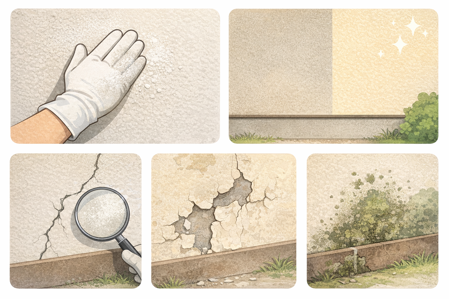 • 壁を触ると白い粉がつく(チョーキング)